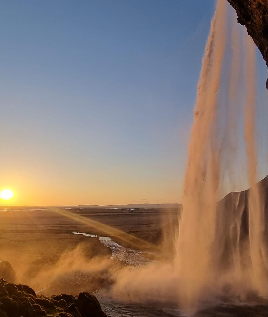 Seljalandsfoss - A Cascading Veil of Beauty - Your first stop is Seljalandsfoss, a breathtaking waterfall that plunges gracefully over a cliff. What sets this waterfall apart is the opportunity to walk behind the cascade, where you'll be enveloped by a shimmering curtain of water. This immersive experience allows you to see Seljalandsfoss from a unique and intimate perspective.