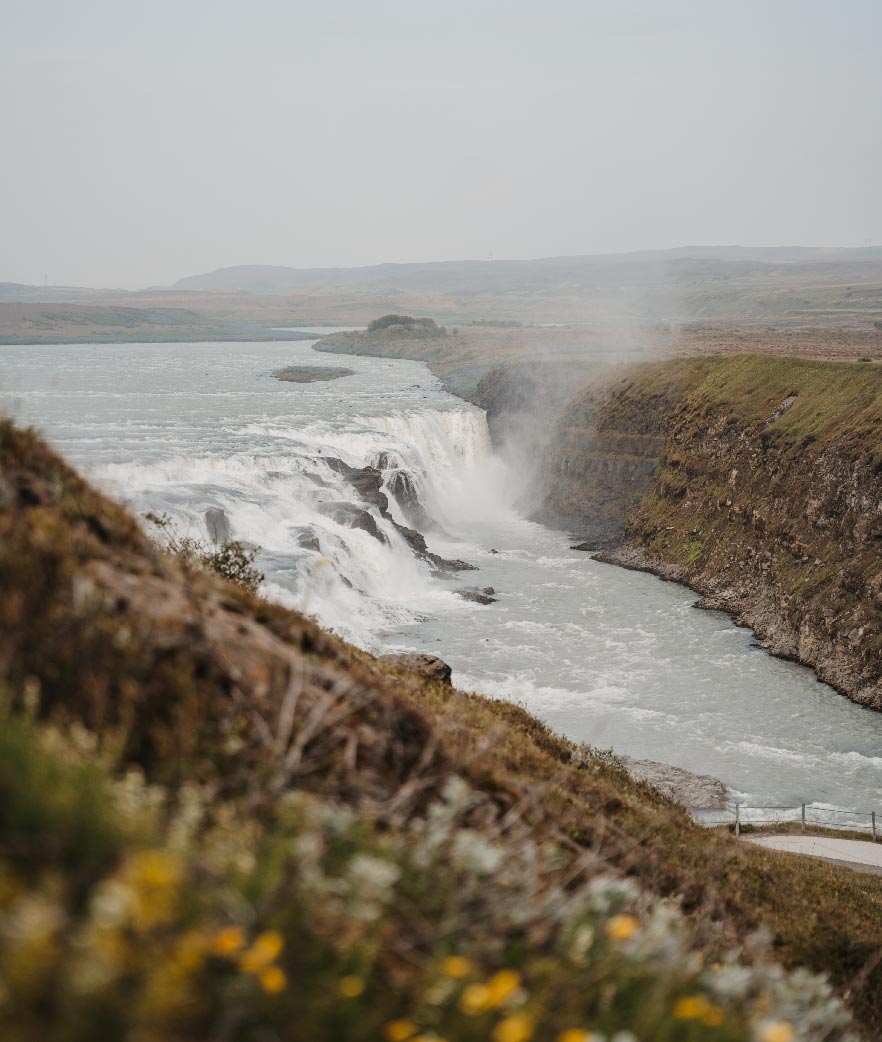 Besides the waterfall itself, Gullfoss is surrounded by hiking trails and viewpoints that offer breathtaking panoramas of the rugged Icelandic landscape. The surrounding area is blanketed with lush flora during the summer months, providing a stark contrast to the glacial surroundings.