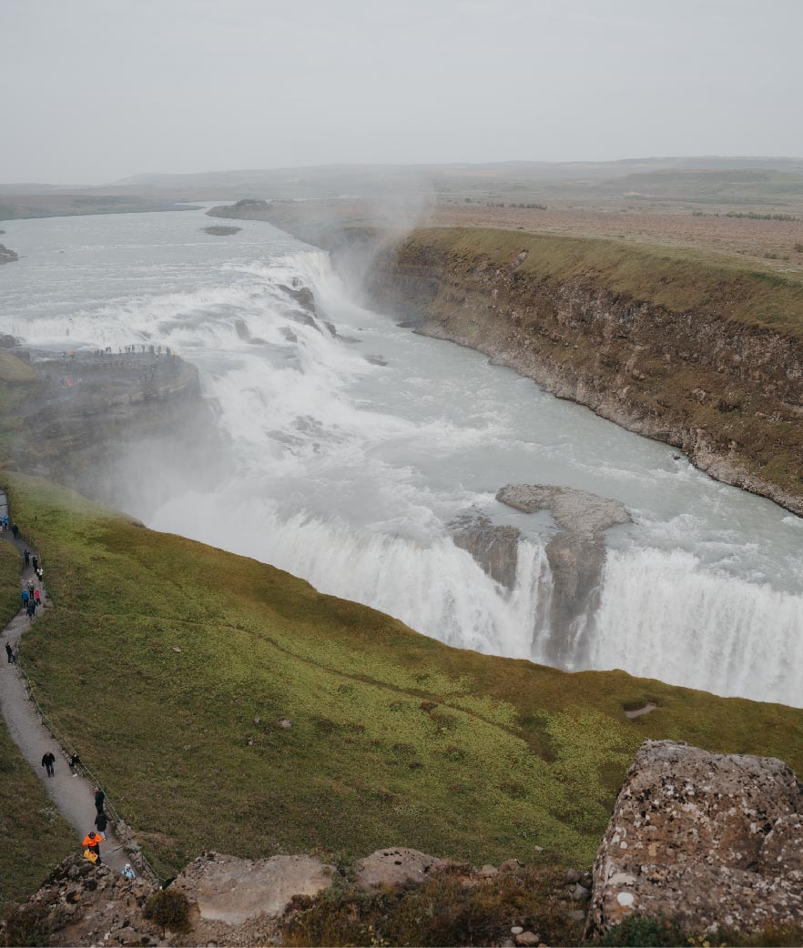 Gullfoss Waterfall - Our journey through Iceland's natural wonders brings us to Gullfoss, a waterfall that defines the essence of untamed beauty and power. This iconic cascade, often referred to as the ``Golden Falls,`` is not only a visual spectacle but also an embodiment of the country's spirit.