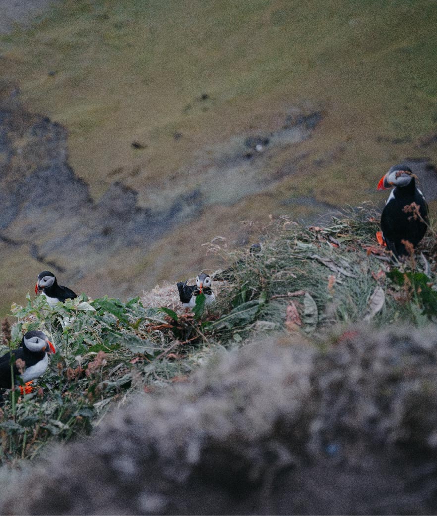 Puffin Colony - A Seabird Spectacle - The puffin, often referred to as the ``clown of the sea,`` is an iconic seabird species that finds its sanctuary on the shores of Iceland. Our tour takes you to a puffin colony, where you'll have the chance to observe these charming birds up close as they go about their daily lives, nest in burrows, and take to the skies in search of food.